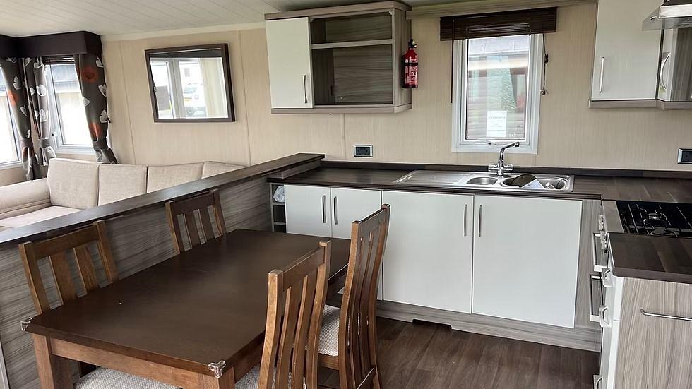 This Swift Moselle 2016 38x12 features a large living room, dining area, fully fitted kitchen with integrated appliances, three bedrooms, master bedroom has en-suite facilities, shower room, double glazing, central heating and patio doors.